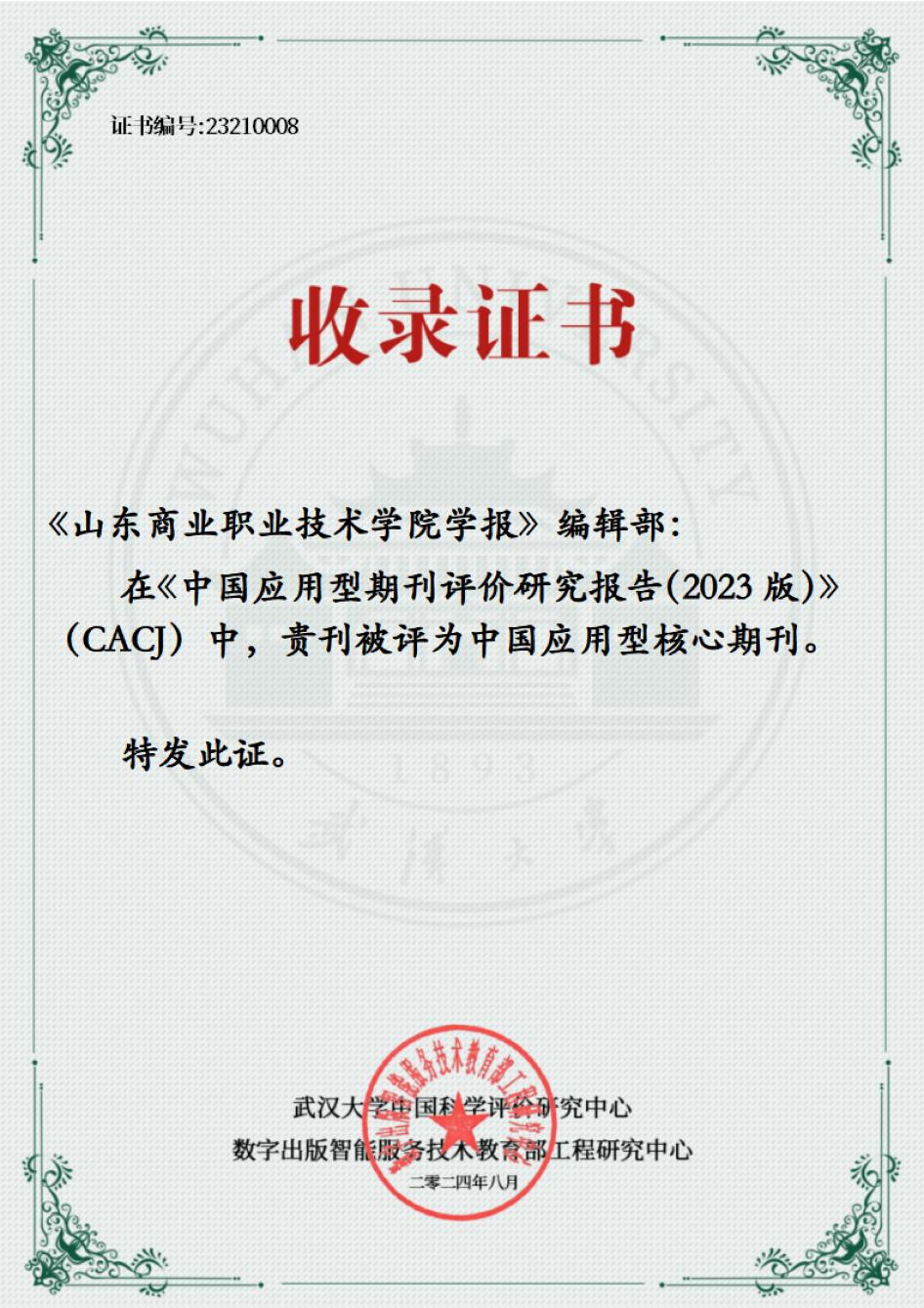 近日,武汉大学中国科学评价研究中心、数字出版智能服务技术教育部工程研究中心联合开展的国内首次应用型期刊评价工作顺利完成,《中国应用型期刊评价研究报告(2023版)》正式发布,《山东商业职业技术学院学报》被评为中国应用型核心期刊。