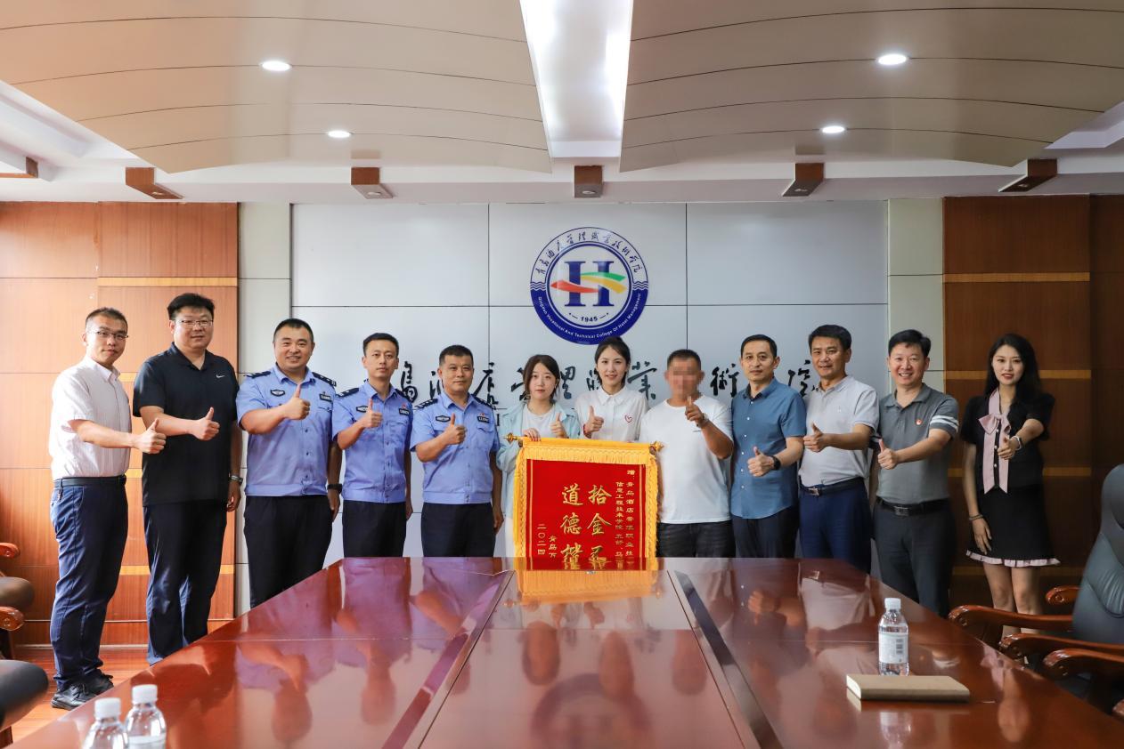近日,青岛申先生向青岛酒店管理职院2023级学生王舒、马玉丹赠送了“拾金不昧 道德楷模”的锦旗,感谢两位同学拾金不昧的高尚品德。