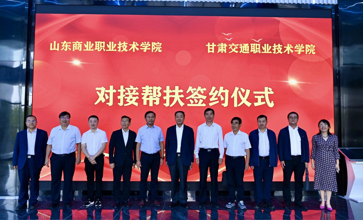 在山东商职学院,张世珍一行参观了产业会客厅、智慧冷链物流实训基地、文化创意产业学院实训基地,了解学校办学理念、办学特色,以及学校在校企共同体建设、教育教学、专业发展与服务社会等方面的情况。随后,山东商职学院与甘肃交通职业技术学院签署了对接帮扶协议,两校将发挥各自优势,实现资源共享、优势互补,共同推动物流类专业(专业群)职业教育发展。