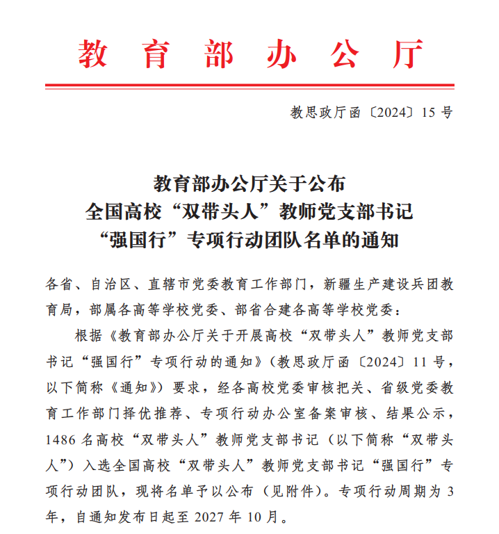 全国高校“双带头人”教师党支部书记“强国行”专项行动,旨在落实立德树人根本任务,深入贯彻落实教育部党组关于高校“双带头人”教师党支部书记(以下简称高校“双带头人”)培育工作的部署要求,充分发挥高校“双带头人”的示范引领作用,引导广大师生在以中国式现代化全面推进强国建设、民族复兴伟业新征程上砥砺新担当,展现新作为。