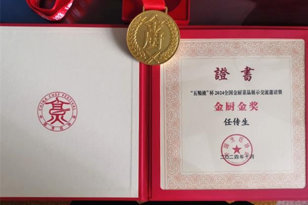 近日,2024全国金厨菜品展示交流邀请赛在四川省宜宾市举行,青岛酒店管理职院烹饪学院教师任传生获金厨金奖。