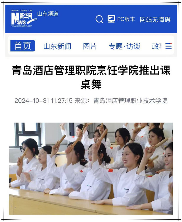 依托专业优势与技能特色,烹饪学院科学设计适合学生的教学内容和形式,推出一系列融专业性、教育性、艺术性于一体的原创思政主题文化作品。其中,“味味道来·至味清‘莲’”短视频一经发布受到热烈好评,被山东省教育厅官方客户端“山东教育发布”视频号转发,传播了特色校园廉洁文化。