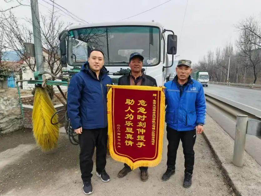 12月10日,淄博市博山区博山镇居民翟先生将一面印有“危急时刻伸援手,助人为乐显真情”的锦旗送到了鲁商服务淄博博山区国省道项目洒水车驾驶员孙庆全的手里,对其仗义出手帮忙灭火的行为表达感谢。