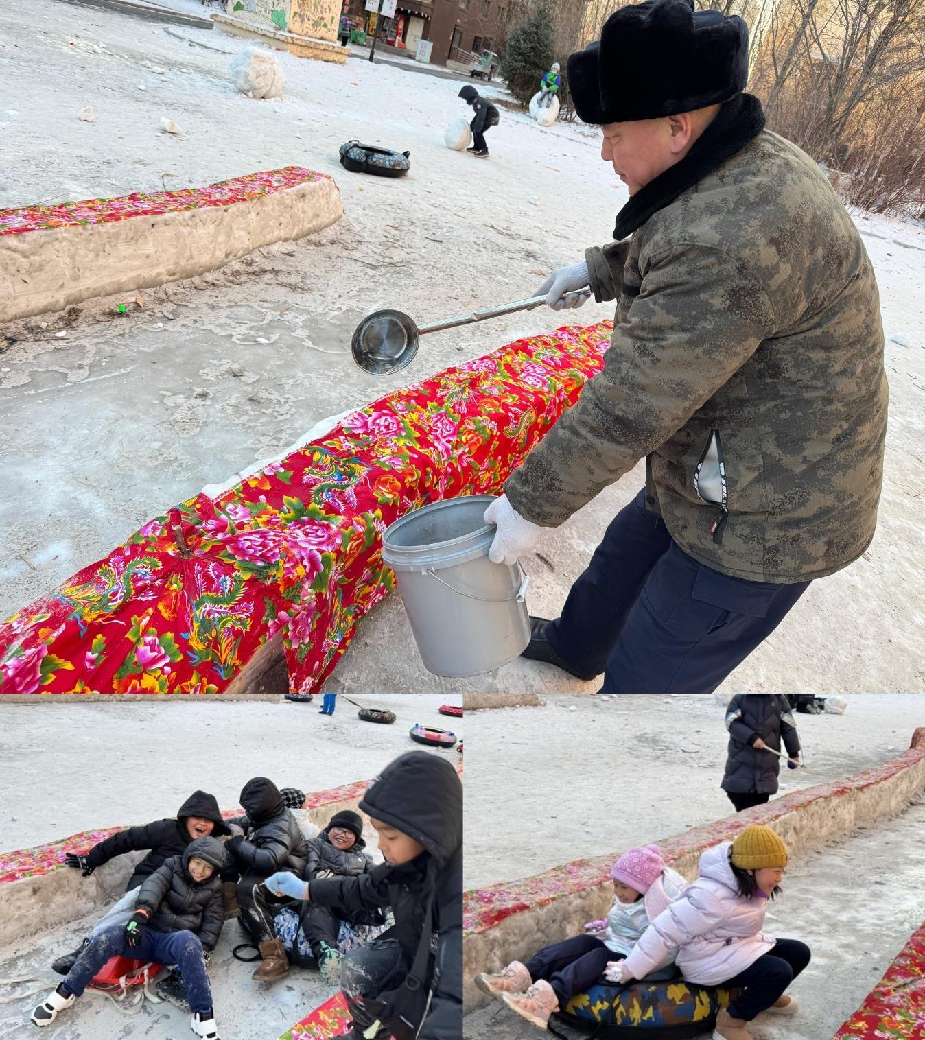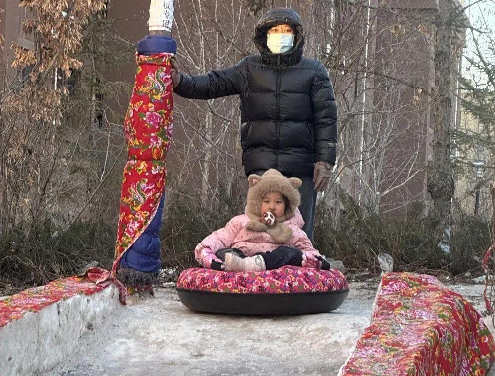 为满足小区居民对冬季户外活动的热切期待,哈尔滨凤凰城服务中心在获得相关部门批准后,立即展开行动,通过精心选址,在小区11号楼附近的广场上,利用积雪打造出了两座别具特色的冰滑梯。