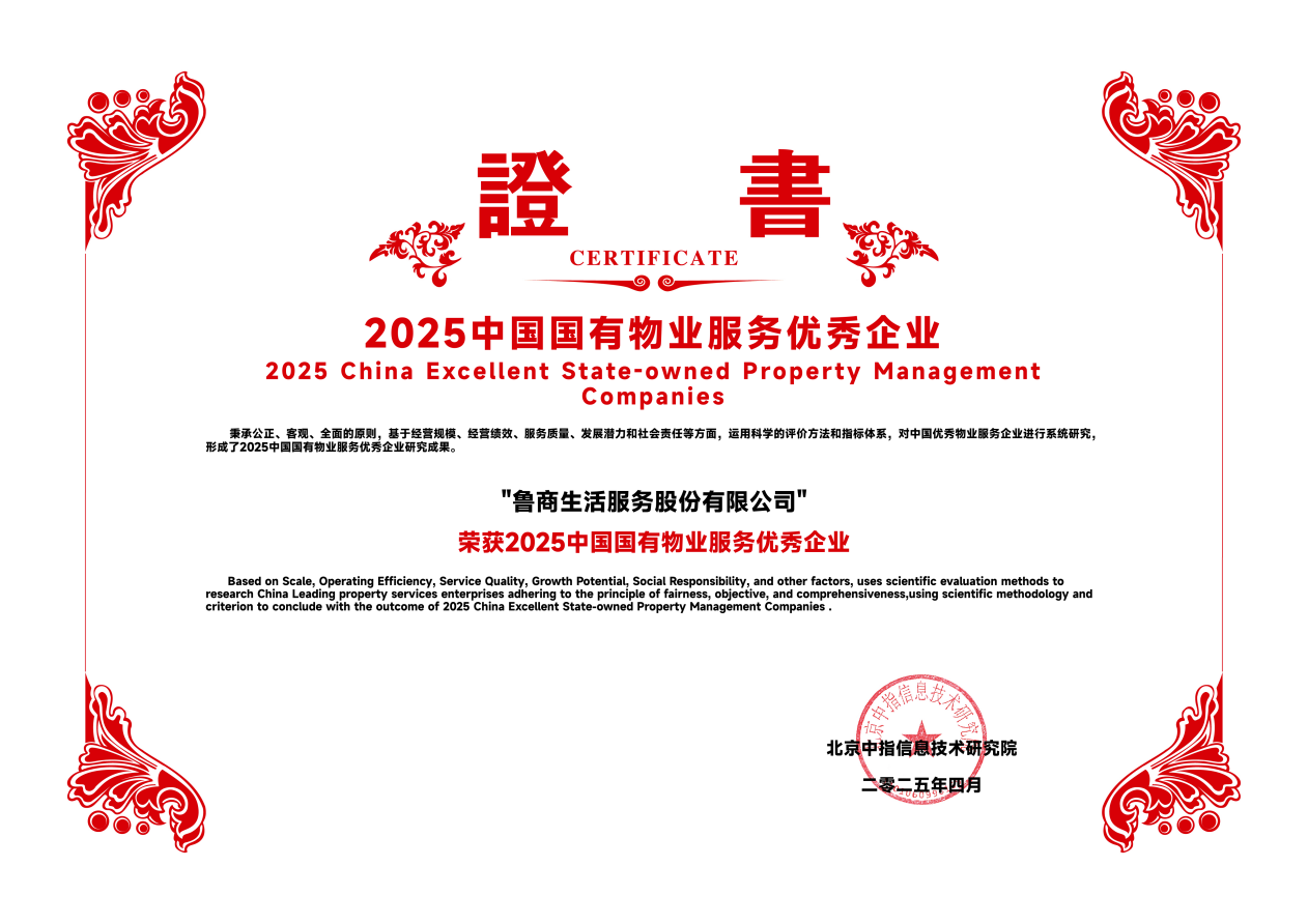 4月18日,2025中国物业服务百强企业研究成果发布会暨第十八届中国物业服务百强企业家论坛在雄安召开。鲁商服务凭借持续提升的综合实力、多元融合的服务生态以及智慧化创新成果,斩获“2025中国物业服务百强企业”第29位、“2025中国国有物业服务优秀企业”两项殊荣。