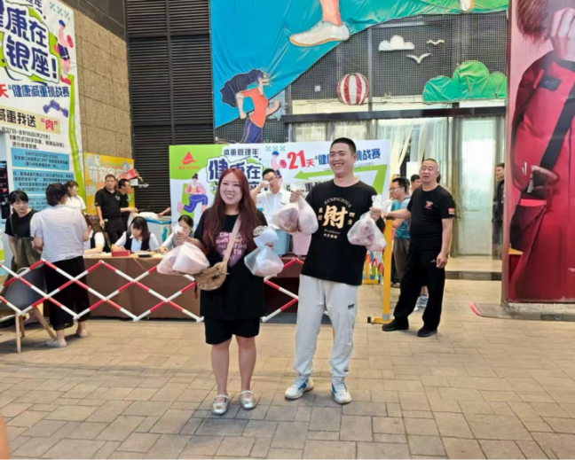 河北张家口店开展的趣味竞赛,吸引了200余位市民报名。大家以“健康减重”为目标,在21天内积极调整饮食、坚持运动,最终92人全程参与。门店根据减重结果及规则,累计向达标市民发放猪肉760余斤。