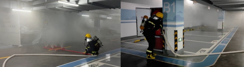 临沂鲁商中心与北京蓝岸丽舍项目不约而同地精准聚焦新能源汽车火灾这一新型风险。临沂项目模拟了地下车库新能源汽车充电起火场景,系统演练了从报警、专用设备灭火到人员疏散排烟的全流程;北京蓝岸丽舍项目则在南彩消防救援站的专业指导下,现场实操了使用防火布苫盖着火车辆、消防水带灭火等关键技战术,显著提升了车库里特殊火情的实战处置能力。