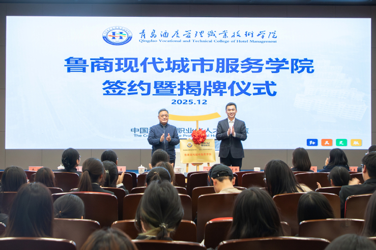 近日,青岛酒店管理职院与鲁商服务共建鲁商现代城市服务学院正式揭牌。