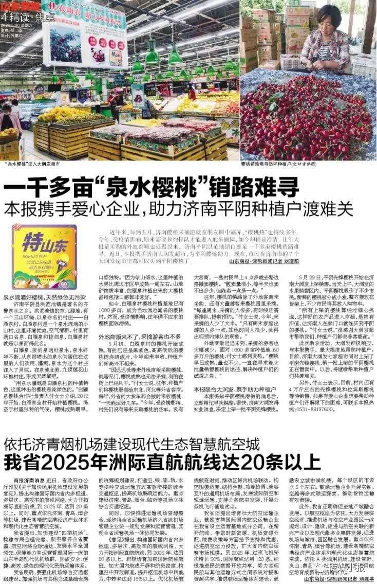 今年以来,山东商报已经累计推出了10多场“特山东”品牌活动,推介了包括平阴泉水樱桃、商河仁凤西瓜等品牌在内的农产品。7月28日至31日,顶着高温酷暑,山东商报记者团队从济南赶赴威海乳山崖子镇枣林村、潍坊安丘市凌河镇的百鹅疃村,在田间地头做了两场直播带货活动,为当地滞销的特色农产品红茄梨、牛奶小芋头和红芽嫩姜找出路。本次活动中,山东商报联合多家媒体共同出击,帮助当地农民售出总计20万斤特色农产品。