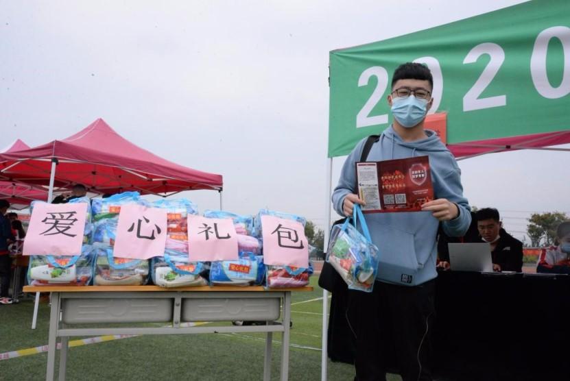 发放爱心大礼包。学校为150名山东省建档立卡家庭经济困难学生提供了爱心大礼包,包括口罩、消毒液、洗发液等生活用品,学校副院长徐红现场为建档立卡学生发放爱心大礼包,并勉励他们努力学习,在校安心读书,早日成才。