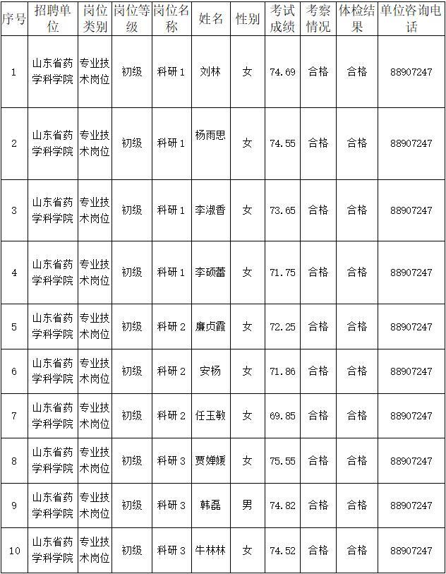 据中共山东省委组织部、省人社厅《关于印发2023年度省属事业单位公开招聘工作实施方案的通知》(鲁人社发〔2022〕23号)等相关规定,山东省药学科学院组织完成了公开招聘考试、考察、体检等工作,现对拟聘用人员进行公示,公示期为7个工作日,自2023年7月11日至2023年7月19日(不含节假日)。公示期间,如对公示人选有异议,请及时向山东省商业集团有限公司反映。