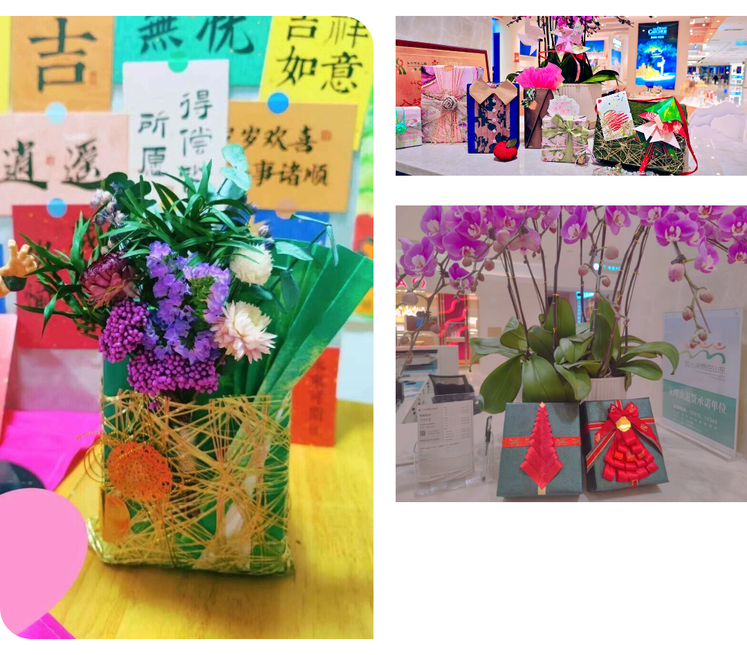 为了进一步提升服务技能,客户服务团队全员系统组织从基础包装到丝带艺术、色彩搭配的训练,按生日、节日、婚庆等节点推出主题包装,满足顾客多样化礼品包装需求。总台陈列优秀作品,开设线上预约包装渠道,最大限度提升了顾客满意度及销售转化率。